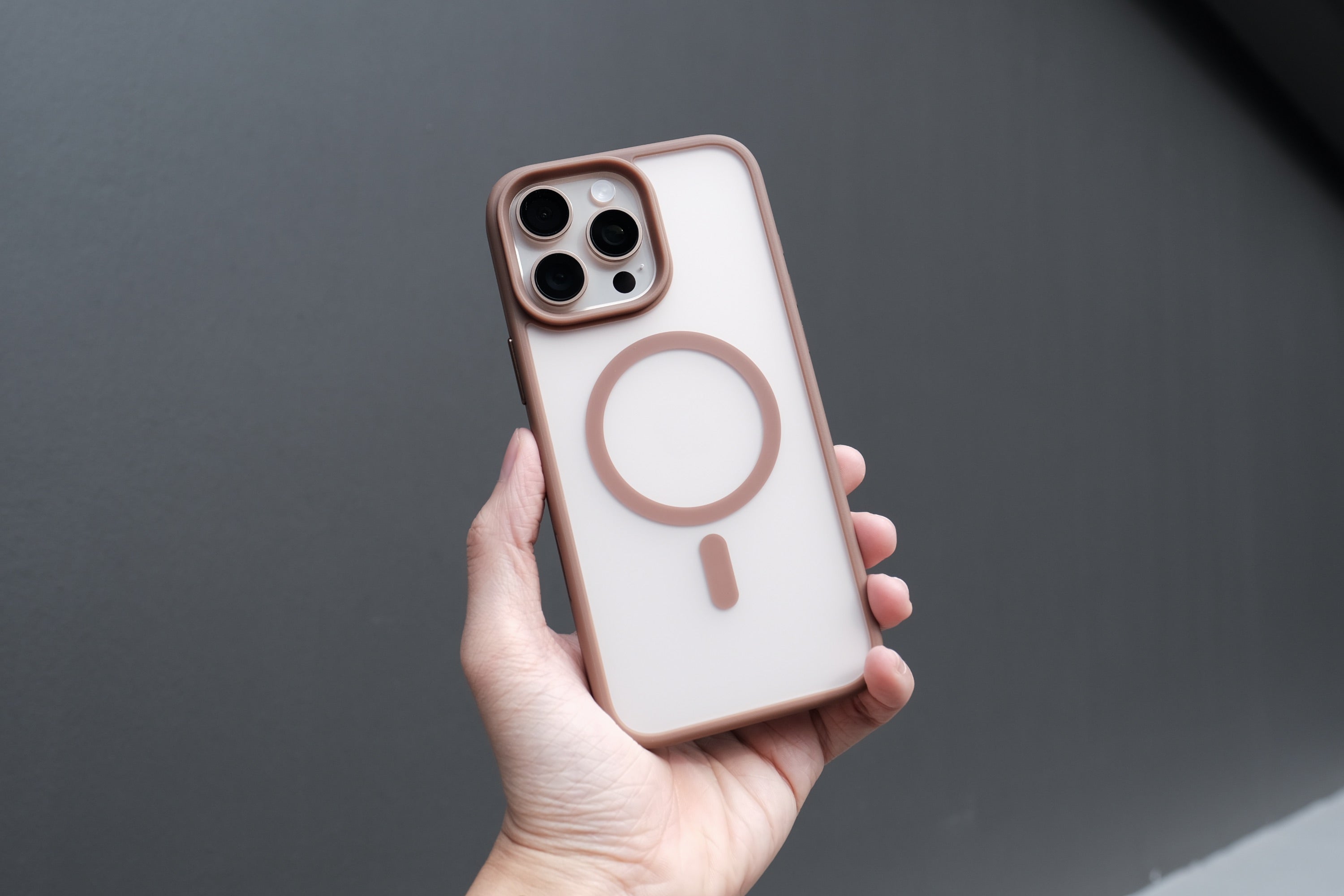 Frosted polycarbonate back to match your iPhone 16 Pro Max's look & feel.